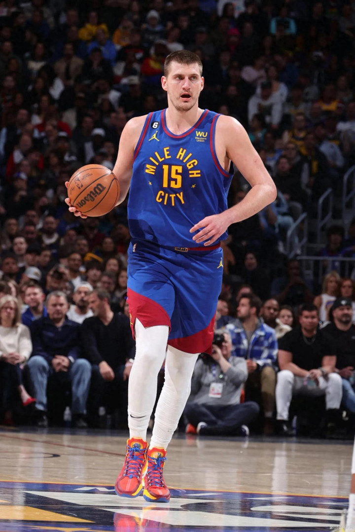 约基奇本赛季场均30.1分13.2篮板9.9助攻,三双频率(每4.83场一次)历史第一,甚至超越巅峰威少。更可怕的是,他还在开发三分技能包——本赛季三分命中率高达56.3%。考辛斯直言:“若再夺一冠,他可能跻身历史前五!”